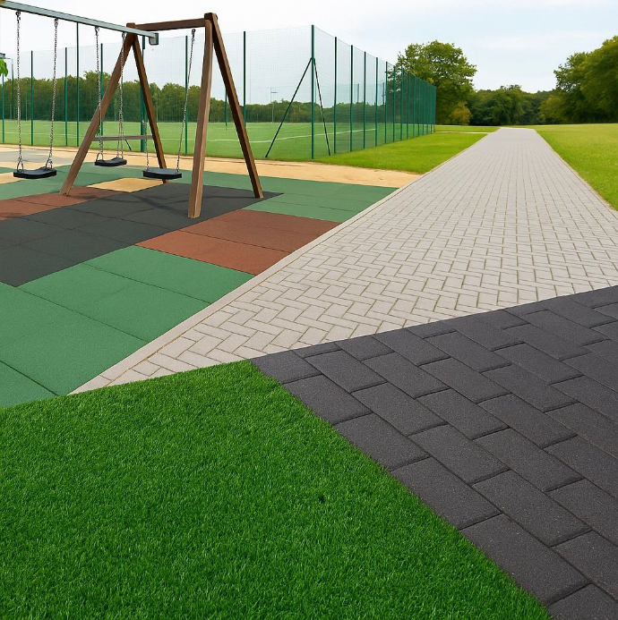 Compatible con caucho natural y sintético (SBR, EPDM), piedras, plásticos (E-TPU, EPS, XPS), madera y corcho. Se adapta a diferentes colores, formas y patrones.